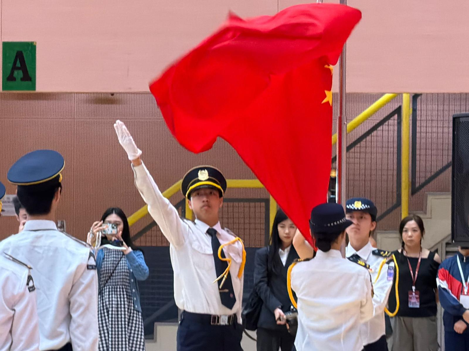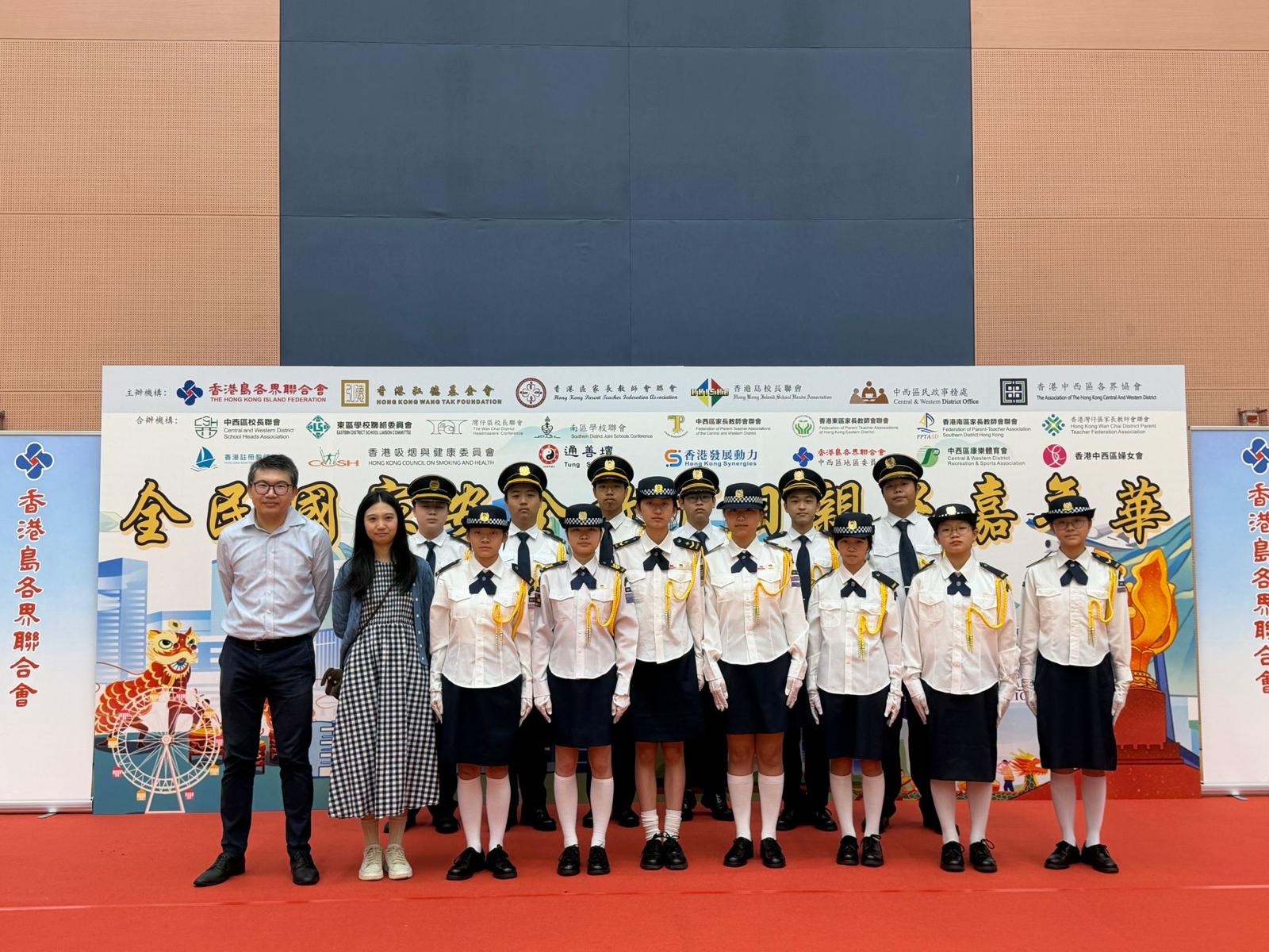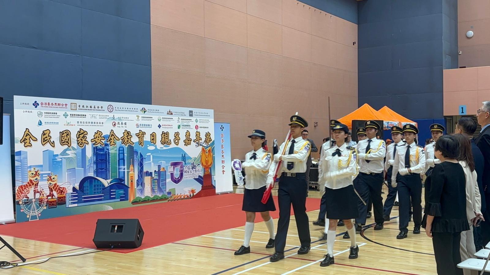 4月12日香港島教育界全民國家安全教育日親子嘉年華,國旗隊主持升旗儀式,亦有學生主持攤位遊戲,服務市民。