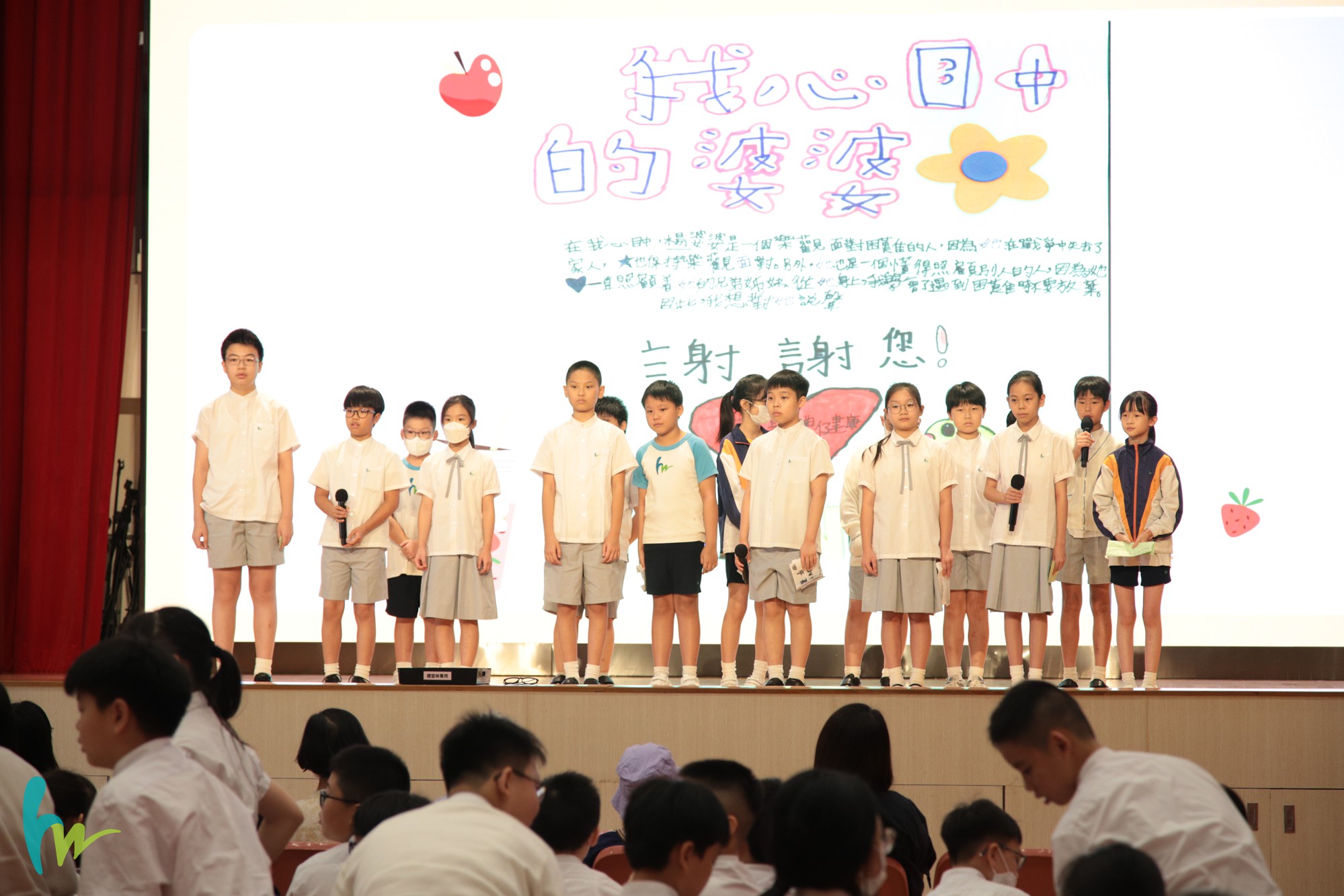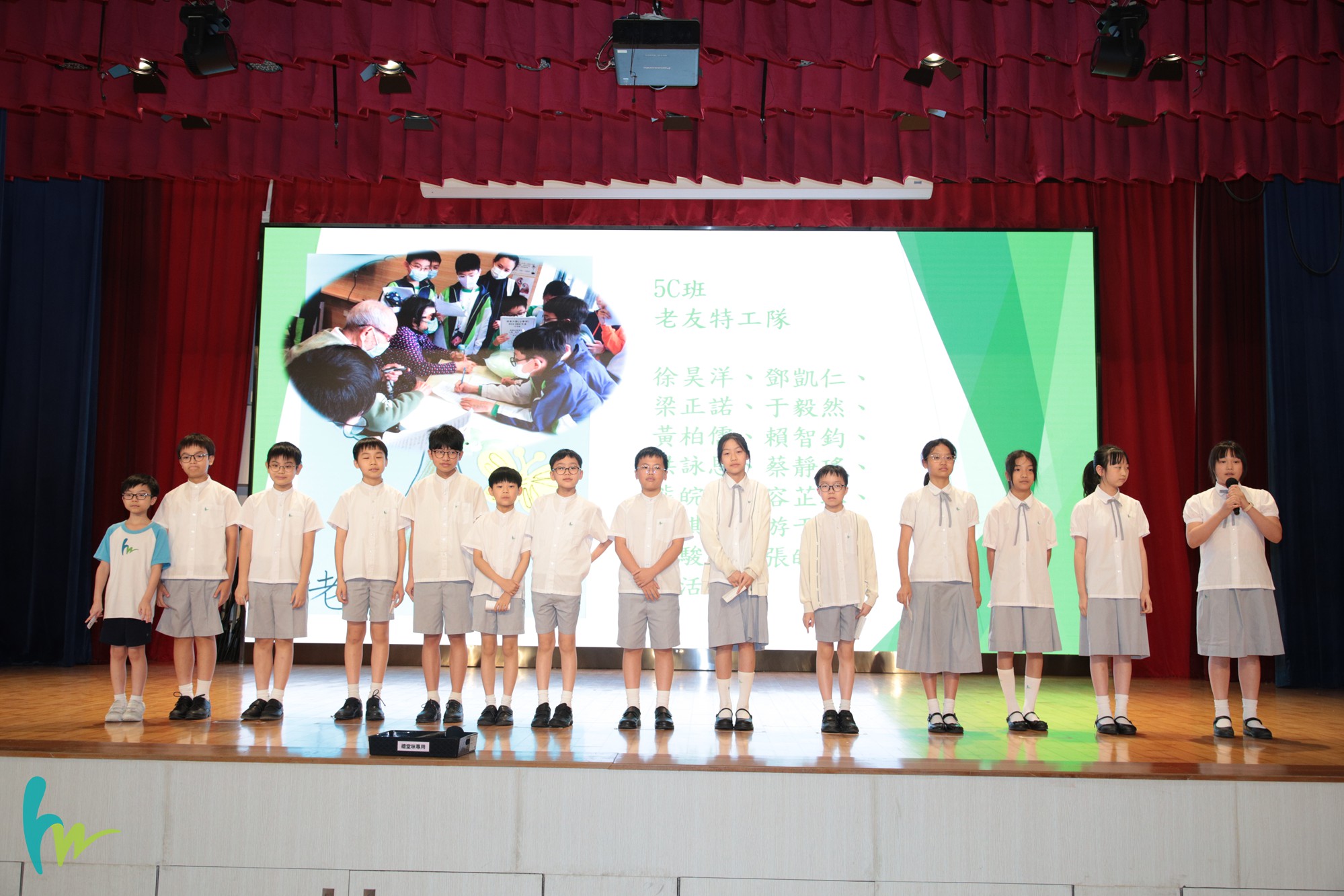 五年級以「職夢.共獻」為主題,透過體驗式服務活動,學習關愛及幫助他人,並透過訪問長者,明白訂下人生目標,生涯規劃的重要性。6月17日匯報當天,學生們與組員分工合作,自信地在台上演出。