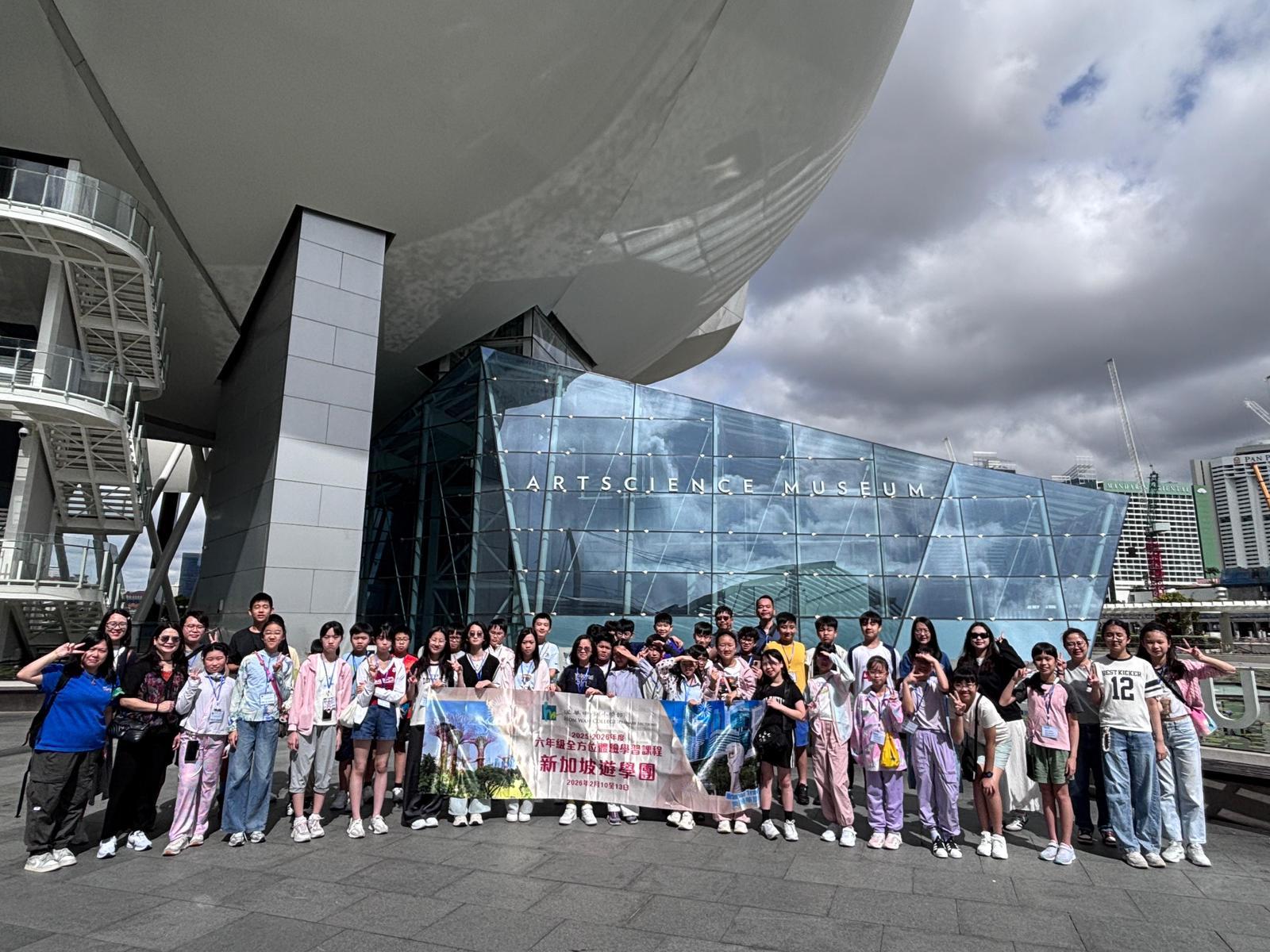 小六學生於2月10日至13日前往新加坡進行遊學課程。除了參觀當地的科學館、科技中心及展覽館外,還在牛車水及老巴剎等地進行問卷調查,對新加坡的發展進行研習。