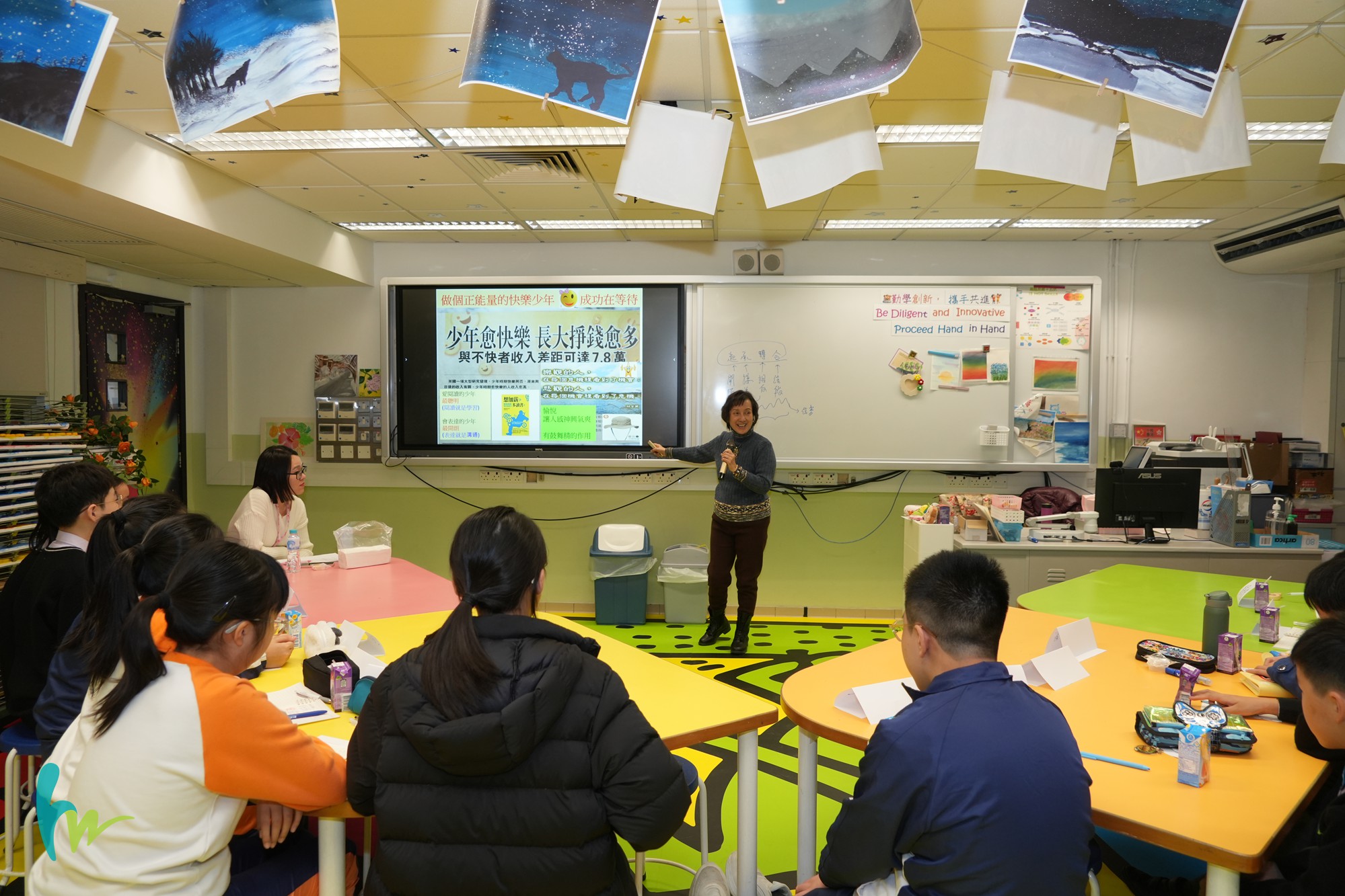 本校特邀孫慧玲作家參與「駐校作家計劃——引爆中文創造力」到校進行增益課程的課堂教學,通過工作坊形式,為同學分享閱讀心得及寫作竅門,藉以培養他們的語文素養。