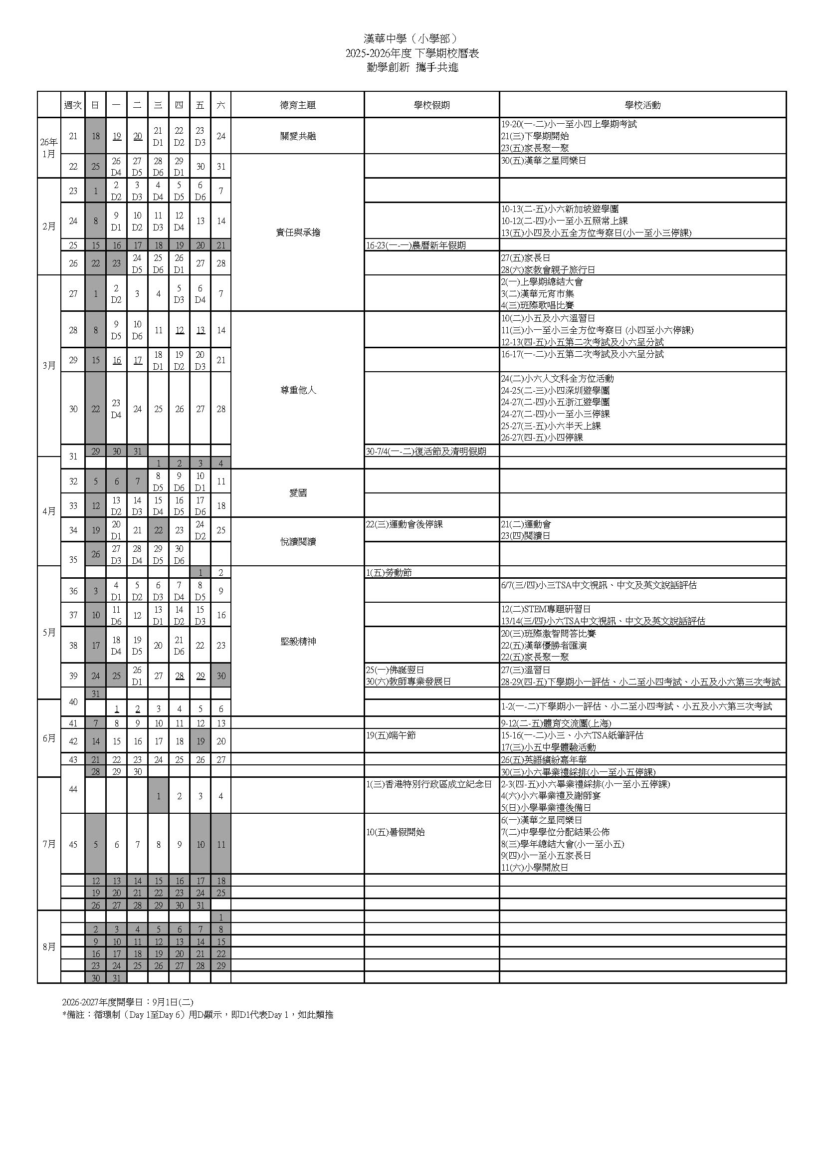 校曆